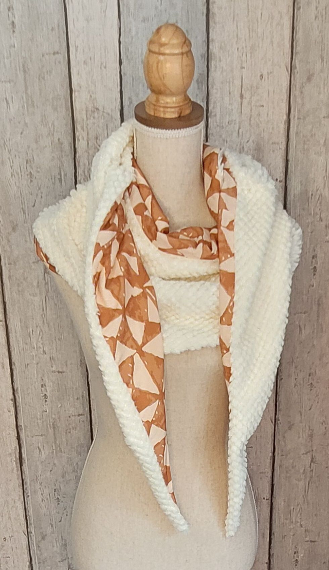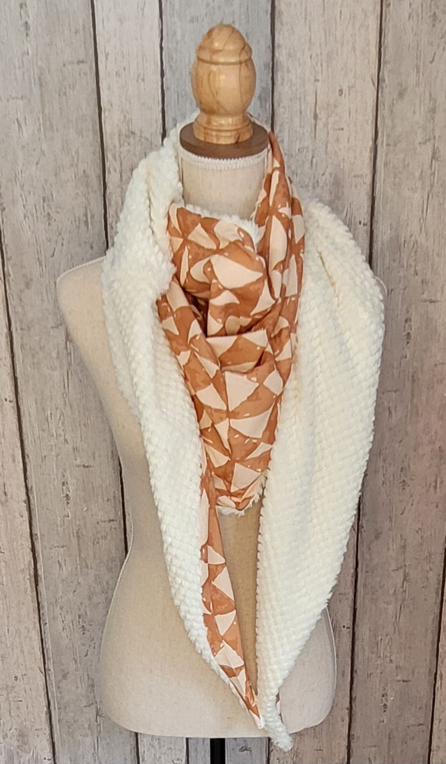 Cette écharpe / chèche sera l'accessoire mode idéal cet hiver. Elle est composée d' une face polaire et d' une face coton toutes douces.