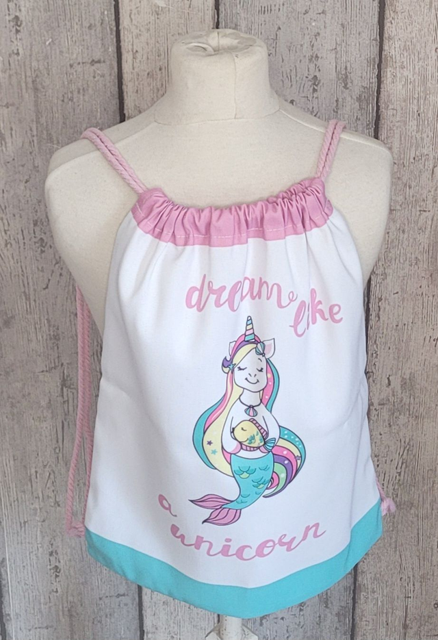 Voici un joli sac à dos coulissant, il est léger et très pratique pour transporter les petites affaires de votre enfant lors de ses loisirs et sorties du quotidien (sport, balade, goûter, voyage, plage...).